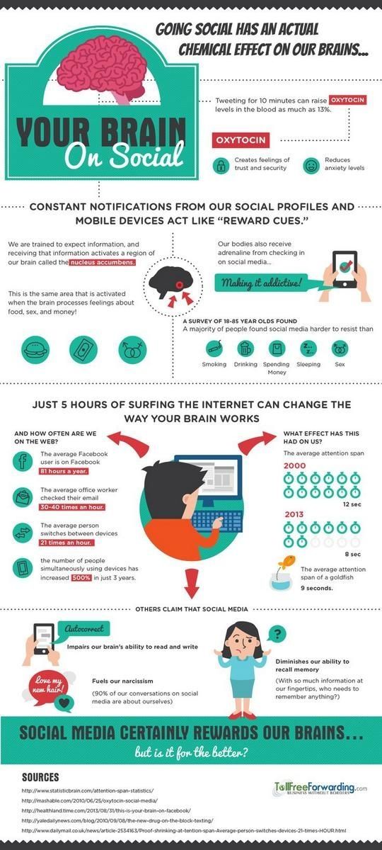 Most alcoholics know that alcohol is harming their mental health, physical health, relationships, career, etc., but they can’t seem to stop. They feel this strong urge, like an obsession or compulsion, that drives them to keep going. Social media has the same effect on the brain.